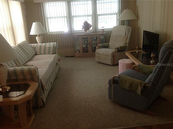 Well maintained single wide. One bedroom, one bath with a glass enclosed Florida room and a glass enclosed lanai. Many updates include: New tinted windows thru out the unit, central A/C 2019, new sewer under unit, Roof over, laminate flooring and carpet, Vinyl siding, and lattice in over sized carport. Turn Key furnished. Great home for getting away from the weather up north. Low maintenance fees.