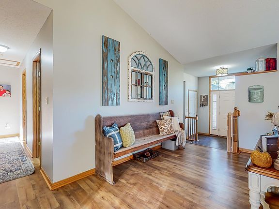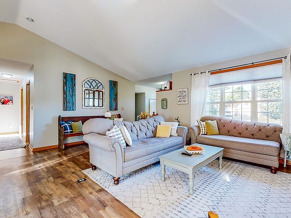 Ranch style...check. Three bedrooms on the same level...check. Walkout basement... check. Need more yet? There is an oversized garage with a work bench, too. Recently updated Furnace, CA, and flooring throughout with a unique floor plan that has a sunken foyer and 3 bedrooms on one floor. Large vaulted great room & Craftsman styled maple cabinetry with a stone back-splash. Master W/I closet. Walkout lower-level family room with gas fireplace for these fall evenings ahead. There is a partially finished 5th bedroom that is used for office. Enjoy the backyard with 14 X 18 deck, patio & spacious flat yard for play & close to school. Playset and shed stay!