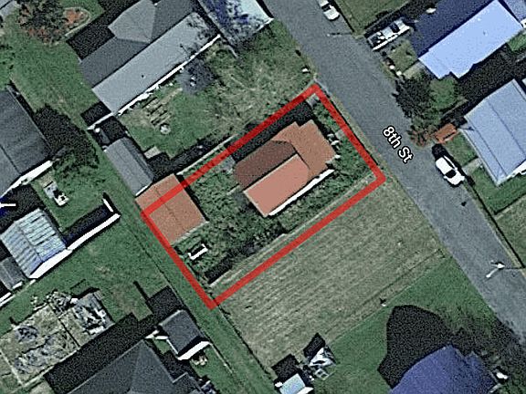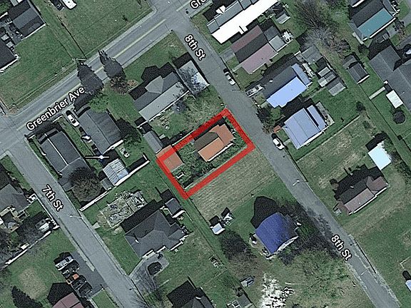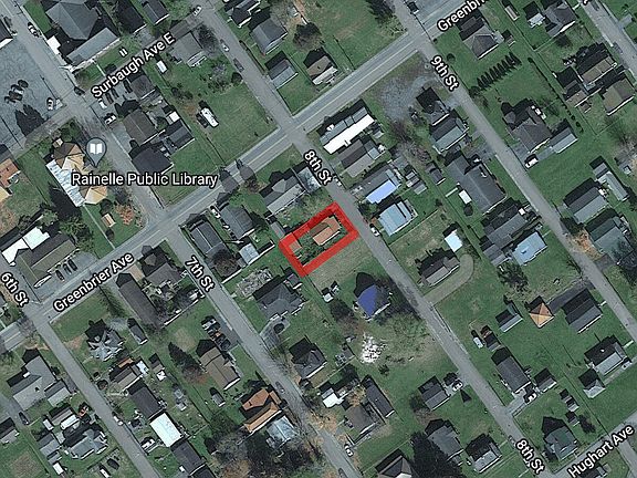 Rainelle, Fenced lot, shell of a house with metal roof, and out building
