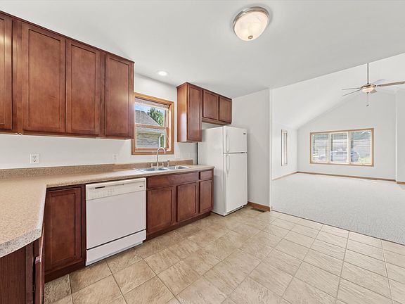 IRON LAKE ESTATES - 100% Move in ready SOLID BRICK RANCH townhome in quiet Iron Lake Estates community. Recently refreshed with neutral paint & NEW CARPETING throughout, this 2 bedroom 2 bath beauty is squeaky clean & ready for new owners! Built in 2006, with charming curb appeal, this solid brick ranch shares only a garage wall w/ neighbors; & backs up to a quiet wooded area with no neighbors behind for ultimate privacy. Vaulted ceilings, convenient main floor laundry & solid 6 panel doors are only a few of the features you'll fall in love with. Spacious primary suite features tray ceilings, large walk in closet, ceiling fan & private bathroom. Modern kitchen; all appliances included! Pull down storage attic in the garage; access to crawl/sump through garage, softener rented. Low $135/mo HOA fee = no hassle lawn/snow maintenance; HOA includes roof maintenance! No Rentals Allowed. Nothing left to do, but move in!
