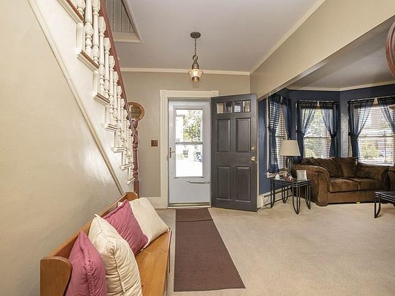 Welcome home to this charming 4 bedroom, 1.5 bathroom colonial. This home offers a large fenced in backyard with large fire pit, back deck and storage shed. The driveway offers off street parking for 4 cars and a covered front farmers porch. Features maintenance free vinyl siding, vinyl replacement windows and newer roof. Conveniently located close to shopping, hospital, highway and buttonwood park.