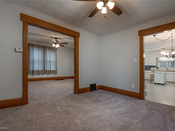 Fabulous location in the heart of North Canton. This charming two story, built in 1905, has approximately 1440 square feet with gorgeous woodwork. Enter through the large screened-in front porch and view the neutral décor throughout. This home boasts a large open eat-in kitchen with tons of natural light. Convenient first floor laundry, with three bedrooms upstairs. Enjoy the awesome deck overlooking a private backyard. Quick access to walk to the parks, school, and downtown. Great starter home, being sold as is.