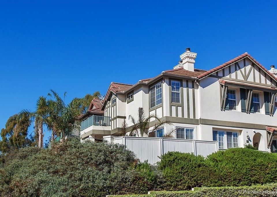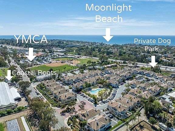 Coastal Living at its best. Wonderful gated community in Encinitas, offers pool, spa, BBQ, private dog park, and walking distance to well known Ecke YMCA, Coastal Roots Farm, Historic 101 and Moonlight Beach. This FULLY remodeled corner unit faces west with peak ocean views from primary bedroom and back patio. Wood floors throughout, plantation shutters, roman shades, new windows, new sliding door, quartz countertops, soft-close shaker cabinets, and all new Whirlpool stainless appliances and Viking refrigerator. Renovated bathrooms include custom tile, frame-less glass shower door in primary, new tub in second suite, new vanities, toilets and hardware. Relax with gas ledge stone fireplace in living room, private back yard with spacious patio. Other updates include new hot water heater, AC unit only 6 years old, and updated fencing plus landscaping.