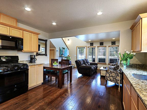 READY FOR A CAREFREE, LOW-MAINTENANCE LIFESTYLE? This immaculate single owner home in Dover Bay is move-in ready with open floor plan, large kitchen with hardwood floors, luminous granite slab countertops, upgraded Huntwood cabinets with crown molding & deluxe appliances including refrigerator, washer and dryer. Thoughtfully designed with three bedrooms including a main floor master suite, three full baths, upper level family room, gas fireplace and heating system, plenty of storage, central air conditioning, two car garage and plenty of parking space. Enjoy gorgeous mountain views and landscaped yard with sprinkler system from your roomy covered porch. HOA dues cover lawn maintenance so you can enjoy the Marina Village, walking trails, beaches & parks, available fitness center, & more