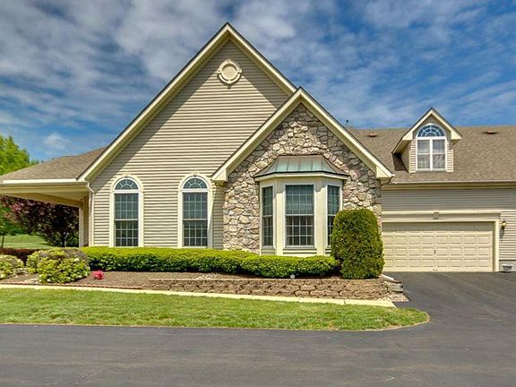 Lovely Roswell Model quad in upgraded and move-in-condition is located in the desirable Flowers Mill Active Adult Community. Entertain friends in the formal dining room with cathedral ceiling, enjoy a relaxing morning cup of coffee on your covered patio surrounded by beautiful plantings. A great spot to BBQ! Warm inviting great room accented with floor to ceiling windows allowing a for an abundance of natural light. Eat in kitchen features newer granite counter tops, white cabinetry and pantry. First floor master boasts a triple window with tray ceiling, walk in closet and remodeled granite double vanity. Do you need room for a third bedroom or office? This floor plan has both options a first floor den and a full finished loft with NEW full bathroom. This upgraded home features include neutral decor, low maintenance engineered wood floors, security & sprinkler system. Custom window treatments ceiling fan light fixtures, replaced hot water heater, granite top vanities in all bathrooms, stamped concrete walk way and patio. Come and enjoy the Best Years of Your Life in the resort style clubhouse with indoor/outdoor pools, grand ball billiard and card rooms, fitness center, tennis & bocce ball courts, bike paths. Close to shopping, public transportation, hospitals & quaint villages of Langhorne, Newtown, Yardley and New hope. Minutes to US 1, Route 95 and the PA Turnpike.