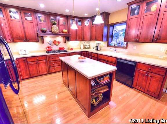 Convenience, Open Floor Plan and one of the Nicest Homes in the Heart of Lyndon. This Beautiful all Brick ranch features A formal entry way with banded hardwood, triple crown molding, and columns separating the entrance into a spacious, 17'x23' great room with 12' ceiling and raised hearth gas fireplace. The Great Room is wide open to a Large Chef's kitchen (21'8"x13'6") and offers hardwood flooring, custom Alderwood Cabinetry (some back-lit ) with a cherry finish, large center island, upgraded Advantium Microwave, Wall Oven, 5 Burner Gas Cook-top, and a beautiful plant window over the kitchen sink. The Great Room also opens to a gorgeous sun room with a wall of windows and opens onto a deck. The Sun room has 2 skylights & entrances from the kitchen, great room & master bedroom.The formal living room off the entryway has a potential to be a formal dining room, Therea??s part of a wall that can be removed in the Living Room to open it to a Kitchen hallway. Off the kitchen a laundry, 1/2 bath, kitchen pantry plus a huge walk-in coat closet (all have hardwood flooring). The Master Bed Room features trey ceiling and easily accommodates large furniture. The Master bath has double bowl vanity, corner whirlpool tub, an over sized shower with beautiful tile, (body scrubber with 4 separate jets) and Big walk-in closet with loads of shelving! There are 2 other bedrooms on the 1st floor one is currently used as an office offers a vaulted ceiling, palladium window and lighted closet! Therea??s an open staircase from the great room into the lower level allows for easy flow for entertaining. Tremendous family room with berber carpeting, 4th bedroom or office with full length window for great daylight (no closet in this room) and 3rd full bath in the lower level, loads of unfinished storage area plus a huge workshop area that has double door to steps up into the garage! Other features of this home include a security system, the home is wired for fiber optics, recessed lighting in many rooms, a pull down floored attic, window screens, 75 gallon hot water heater & Lennox HVAC! The home is within minutes of X ways and Westport Village shopping! On a Cul-De-Sac & treed, private