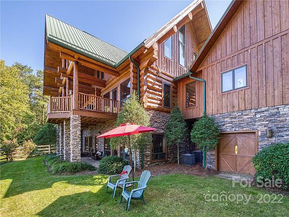 Big views with gentle ridges on 4+ low maintenance acres of privacy. Real mountain living begins in this beautiful log home with a dream come true collector’s garage! You’ll find a spacious, open floor plan, large windows, soaring ceilings and living spaces that invite the outside in. The expansive great room has a masterpiece 2 story stone fireplace that opens to multiple decks & outdoor fun. Main level master with two walk-in closets and en suite guest bedrooms upstairs and down. Attached heated 2 car garage plus a separate exotic 4 car garage with radiant heat, BBQ patio, wet bar and living loft. A masterpiece of finish & design. Situated close to nearby Lake Logan, you are a short 5 minutes to world renowned fly fishing, hiking, the Blue Ridge Parkway and Great Smoky Mountain Nat’l Park. Perfect for those looking to get away from it all and who want a special place that inspires them. Make this your get away retreat or full time Mountain Home!