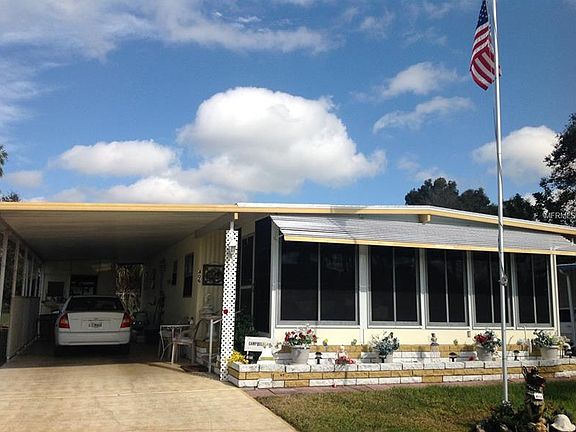 AWC - Taking Backup Offers Chateau Village a 55+ community - great place to live. This two bedroom, two bath furnished home is in the pet section. Unit has new window in living area and the lanai. Enjoy the 10 x 20 glassed in lanai with tile flooring on the front of the house. Washer and Dryer are inside the unit. Master bath has shower only and hi boy toilet. Very private - no back door neighbors has a fence. Lots of community active, heated sliming, and shuffleboard. Maintenance fee is only $140/month includes water, sewer, trash, lawn cutting, recreation hall, heater pool and shuffleboard. Maintenance free living close to everything. Co op Park - get a certificate for the land.