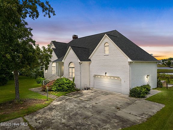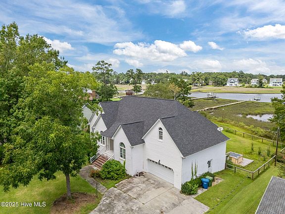 Serenity awaits in this custom-built waterfront home nestled along the scenic banks of Hewlett's Creek. Designed for comfortable and elegant living, the home features a first-floor owner's suite, two additional first-floor bedrooms, a formal dining room, and a spacious living room complete with custom built-ins and a cozy gas log fireplace. One of the standout spaces is the generous sunroom offering uninterrupted views of tranquil Hewlett's Creek and the surrounding natural beauty. A CAMA permit has already been approved for the construction of a dock and lift, providing direct water access right from your backyard. For those seeking additional space, the expansive unfinished area above the garage and main living level offers endless possibilities—it's ideal for a second owner's suite, home office, or bonus family room (see floor plan for details). Located in an excellent school district with no HOA, this home is also just minutes from shopping, dining, and local beaches. The unfinished attic offers the potential to nearly double your living space, making this home as flexible as it is beautiful. Plenty of room for a pool!