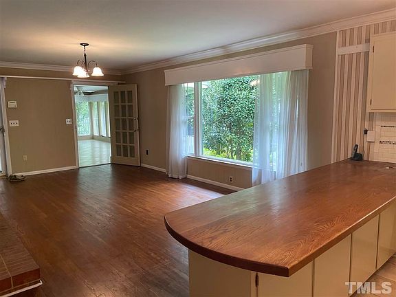 VERY SPECIAL & CHARMING, FEELS SO MUCH LIKE HOME! BRICK RANCH w/ Living Room, Family Room, each w/ a brick faced fireplace & hearth, Large Sunroom Overlooking gardener's paradise backyard - Gorgeous Hardwood Floors in all rooms except kitch, baths & sunrm. His & Her, yes 2, large & wired outbuildings, 2 car garage w/ large laundry room & large storage room, So much character in this home, inviting spacious foyer, vinyl windows, Convenient, 10 mins. to Downtown Raleigh! Fenced Backyard, Front Porch