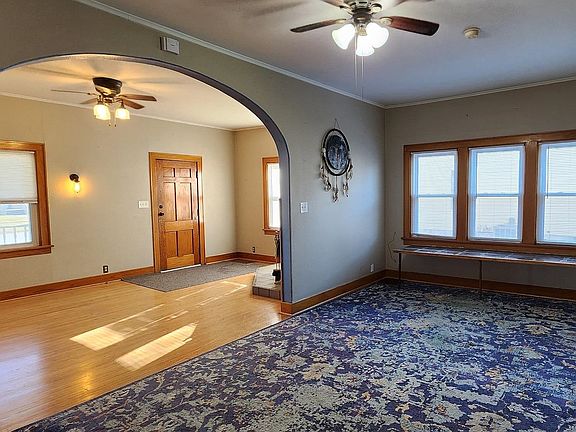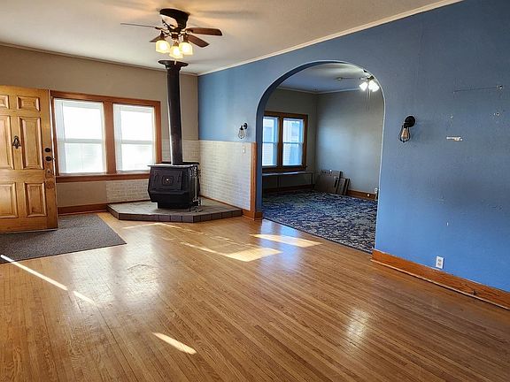 Spacious, and affordable 4 bedroom, 2 bath home in Elwood, NE. This home has so many of those original details like original trim, hardwood floors, beautiful banister, high ceilings, and lots of windows for natural light, but it has been updated too. Unlike most homes this age, this one has a main floor primary bedroom with hardwood floors TWO (2) lighted closets, and a spacious en suite bathroom. There are two living spaces - the front room has a wood stove for those chilly nights, and the back den is just off the kitchen, and connects to the laundry room and back entry. Right outside, you will find a view-friendly fenced yard and single detached garage. Updated siding & wrapped trim, windows, roof, HVAC, and water heater will keep maintenance down for many years. Find three more bedrooms upstairs with a sunny hallway that could double as an office or hangout area. There are no bathrooms upstairs, but one bedroom is perfectly sited to add one in the future. The basement is partial, and houses the updated mechanicals and storage & workshop spaces for those projects, holiday decorations, and canned goods too! Enjoy sunny morning coffee on the huge front porch, and shaded evenings grilling or gardening in the back yard. This is an oversized lot with a long driveway for ample off street parking. Schedule a time to see if this is your next perfect move.