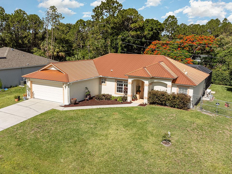 2-bathrooms home with flex room and dining room provides comfort and convenience. The primary bathroom is like having your own personal spa to relax and unwind. Don't miss this unique opportunity to own a piece of paradise with an additional almost 1/4 acre lot available for your future projects. The roof was replaced in 2021. The A/C is 5yrs old. This home also has an irrigation system, 220 volt outlet for generator hookup