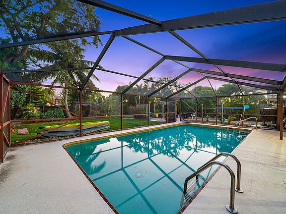 RARELY AVAILABLE 4-bedroom pool home on LARGE LOT with NO HOA and A-RATED SCHOOLS in the heart of Jupiter. Newer laminate flooring and large private fenced yard with outbuilding for extra storage. Walk or bike to school, shopping, library, and more from this home in close-knit, friendly neighborhood of 11 other homes. Bring your toys; home has 30amp outdoor outlet for RV or camper. Half mile from new boat ramp. Home is on same utility grid as hospital and police department.