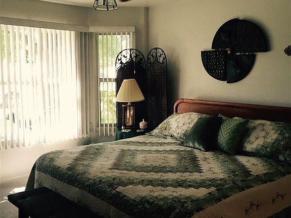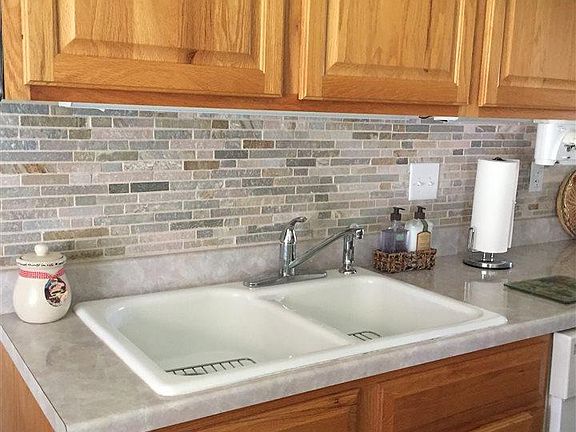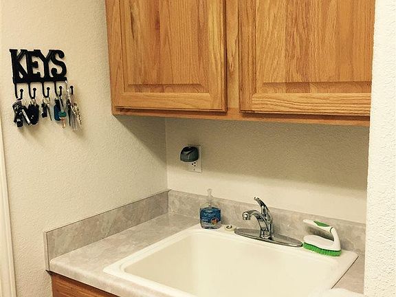 This lovely 3bd/2ba home is 1727sf w ceramic tile in the entry and living areas. New accent tile in the kitchen back splash with custom lighting jazzes up this kitchen. The huge covered patio in the backyard is perfect for lounging and BBQing in the late afternoon. The master bath has separate dressing area with his and her sinks and separate closets with ample storage. The bay window looks out onto the front lawn. Separate washroom has plenty of storage and a deep utility sink. Jump in the golf cart and enjoy a round of golf. Or swim in the heated indoor community pool at the Leo Sweet Community Center. Ceramic tile in living areas, ceiling fans throughout, upgraded appliances, large covered patio.
