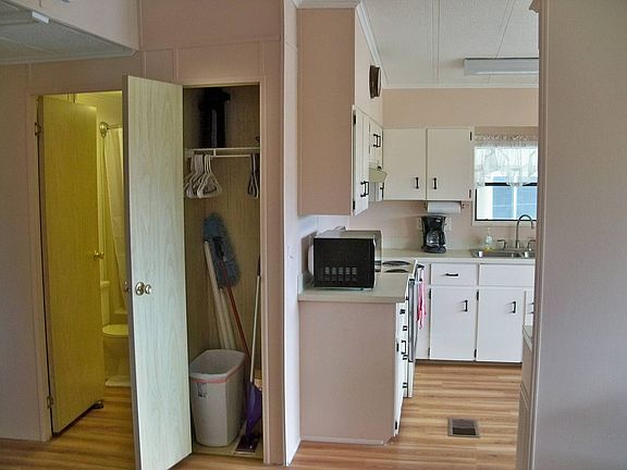 This 1985 2 BR 1.5 BA 768 SQ. FT. home is light and bright and located on a CUL DE SAC. This home features inside freshly painted, Laminate Flooring throughout, Large living Room, Nice size kitchen, 11 X 14 Master, Good size guest bedroom, 8 X 10 Storage Shed at end of carport, Exit door on both sides of home. 12 X 36 Carport and 2 Sets of Bay Windows providing a great view , All this plus short walk to clubhouse and pool. A Must See To Appreciate.