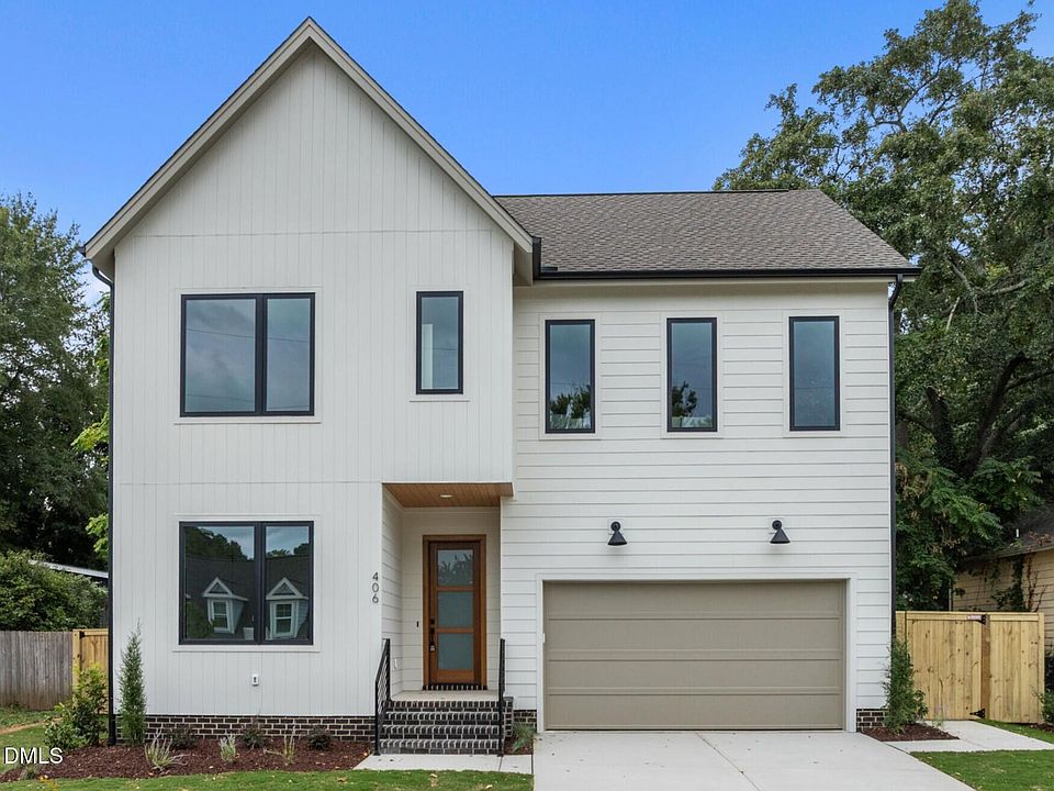 Creating Homes that Revolve Around You! Built by Revolution Homes, this 2025 Parade of Homes entry has 4-bedrooms, 3 baths and offers a light-filled, open layout with designer touches and accents throughout. The kitchen includes black stainless Bosch appliances, natural-tone cabinets and tile backsplash that extend to the ceiling, a custom hood, quartz countertops with waterfall edges on large island, and a spacious pantry. The downstairs guest room can easily be utilized as an office, separate from the main living area, and conveniently accessible to a full bath. Enjoy hardwood floors throughout the main level, staircase, and upstairs hallway. The family room showcases a beautifully accented fireplace flanked by natural-tone built-ins, and a large slider opening onto the screened porch for seamless entertaining and relaxation. Extra highlights include designer lighting and sconces, stylish custom tile in bathrooms, and a custom mudbench with drop zone. Upstairs offers two bedrooms with a shared buddy bath, a spacious rec room with french doors, and a dedicated laundry room. The primary suite includes a double vanity, luxurious shower, and a walk-in closet tailored to your needs. HERO certified with thoughtful energy-efficient features like a sealed crawlspace, tankless water heater, and 2x6 exterior walls deliver comfort and value behind the scenes. With a 2-car garage and quick access to parks, shopping, and downtown Raleigh, this home blends craftsmanship, sustainability, and location in one perfect package! Move-in ready with all appliance needs included.