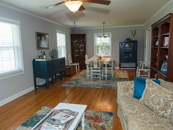 Outstanding! This freshly painted brick home is Conveniently located in the Cool Springs Subdivision. The home has hardwood floors throughout the living areas and bedrooms. The bathrooms have been updated as well. A sun room with a brick floor as well as a abundance of windows in the kitchen, living and dining room provide an abundance of natural light. All of this is situated on a spacious well maintained lot. There is a storage building and sprinkler system as well.