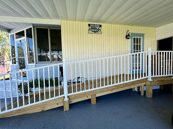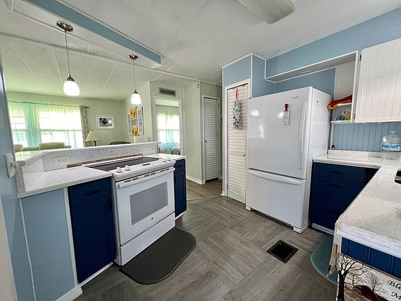 406 Coquina Dr, Colony Cove South Section, 55+ pet and golf cart friendly, resort lifestyle community with homes on leased land. 2022: New HVAC and New laminate floors! 2020: New kitchen remodel! Appliances and quartz countertops 2015: New roof, New energy efficient windows, New electric panel, New plumbing! Available immediately; Mostly furnished with turnkey supplies! You can spend the night on your very first day of ownership! The theme throughout is sea foam, sunshine and blue skies. Calm subtle colors! There is a handicap ramp right up to the new 12 light entry door with built in blinds. Enter into the newly remodeled kitchen! You will love the new two tone cabinets, Quartz hard surface countertops with under mount stainless steel deep sink with a window overlooking the carport. There are new Whirlpool appliances, an island with drop lights and two pantries. The kitchen flows to the formal dining area that has even more cabinets in the custom built-in china cupboard. It is a great place for a coffee or adult beverage bar or a place to showcase your treasurers. The dining area opens into the generous sized living room. Beautiful new laminate floors throughout! There is a front set all season bonus room that can be used as an extra bedroom, office, den or hobby area with its own private entrance. There are two sliding glass doors and ceiling fan to circulate air conditioning to this sunny room with new hard acrylic windows. The owners bedroom suite welcomes you with a double closet and built in storage drawers. A stackable washer/dryer makes wash day very convenient! The en-suite owners bath has a walk in shower. The second private bedroom has its own large closet and guest bathroom with a newer shower/tub enclosure and double sink upgraded vanity. It is conveniently located near the kitchen and living space. That is not all! -There is a second side set water tight lanai with hard acrylic windows, two entry doors, indoor/outdoor carpet and a built in auxiliary AC unit. It is a comfortable 12 x 14 room where you can enjoy the cool gulf breezes with your morning coffee or even an afternoon siesta! It is extra living space and to entertain guests. Attached to this room is a 12 x 8 storage shed. -Another bonus is that a 2012 golf cart is included! It is a Star EV Limited SS 48V with brand new batteries and is street legal when properly registered. On the carport there is plenty of room for the golf cart and a couple cars tandem style. Just outside behind the home is a view of a fenced pond where you can enjoy the antics of waterfowl and wildlife. The home has Florida landscaping with beautiful palm trees in the front of the home. The home is located near one of the main community entrances on the South section for easy access in and out of the community. Come & go as you please knowing the lawn care and courtesy patrol will allow you to leave worry free. Located in award winning Colony Cove, an active age qualified community. The monthly lot rent of about $1088 includes taxes, water, sewer, trash, 24/7 safety patrol, lawn mowing and much, much more! See the list of amenities further down in description. Florida MH Sales, LLC cannot guarantee or warrant the accuracy of this information, measurements or condition of any property. The buyer assumes full responsibility for obtaining all current rate of lot rent fees and pass-on costs. Lot rent is set by the community and is subject to change. The buyer is responsible for obtaining all rules, regulations, pet policies, etc., associated with the park from the community administrative office. Florida MH Sales, LLC is not responsible for quoting of fees or policies. Measurements are approximate. All homes are sold "as is" and personal or professional inspection is encouraged. Life in a land lease community offers many advantages; increased financial freedom, maintained neighborhoods, wide variety of amenities, security and a sense of commonality with fellow hom