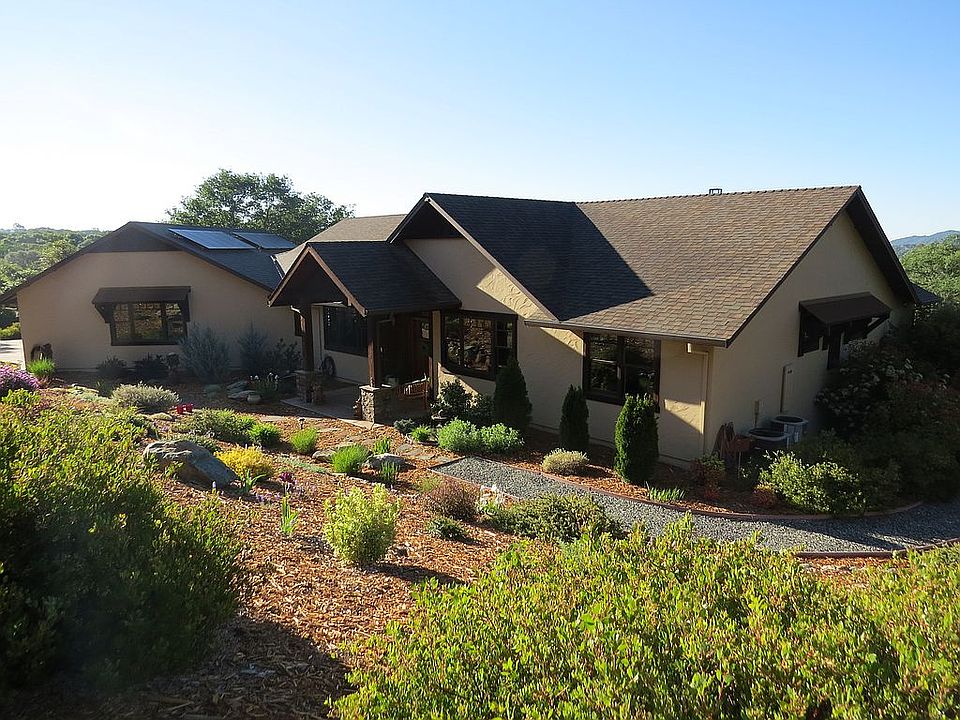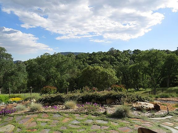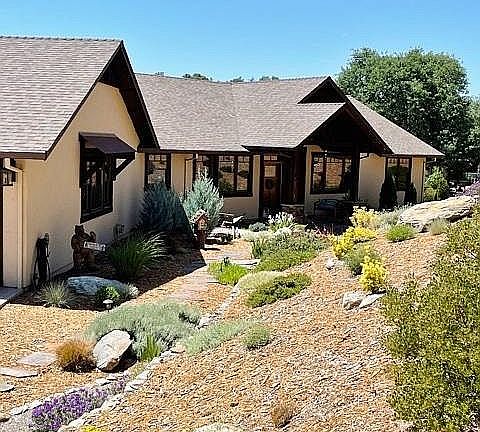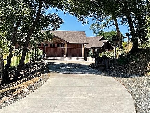 The first very private estate to ever hit the market in the Greenhorn Creek Golf Resort. No expense was spared in the development and construction of this spectacular property. Experience the private drive up to the electric gate entrance. Park in one of the four garages and walk to the elegant entry porch. Just inside is a huge Great Room with a wood cathedral ceiling and real wood burning fireplace. All floors are wide-plank engineered oak, kitchen has leather textured granite counters, and solid wood cabinets. The primary bedroom is spacious with a wood cathedral ceiling and views to the landscaped rear yard and open space. The bath has double sinks, large soaking tub with waterfall spout; over sized shower and separate water closet room. The huge walk-in closet is perfect. At the other side of the house are the two other bedrooms, each with en suite baths. Between them is a powder room with pedestal sink. Just off the great room is a classic office with decorator glass doors. The spacious, fully equipped laundry room is located on the way to the four-car garage. The garage boasts a separate storage (hobby?) room space 19 1/2ft by 11 1/2 ft. There is a workshop area and 1/4 bath to far side with access door to the backyard area. Milgard real wood windows throughout, Dual HVAC systems, including two on-demand tankless water heater systems and an 'owned' solar system. The grounds are possibly the most spectacular aspect of this property. Landscaped by a Master Gardener, it has it all: greenhouse, potting shed, storage building, covered wood storage, pathways everywhere, raised vegetable gardens, babbling brook just off the patio, and some of the most beautiful plantings you will ever see and all plantings are on automatic water drip systems. This entire 1.15 acre parcel is wire fenced to allow view of the scenery while enclosing the property (one 80 acre parcel borders to the south west....the land to the north is owned by the house at the top of the hill which allows added privacy for both properties). Extreme pride of ownership is evident at every turn within this amazing property. Be sure to watch the virtual video (click at top of listing bar).. NO SHOWINGS until 5/22.