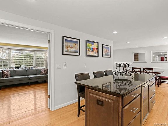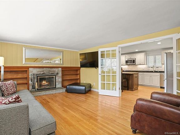 Absolutely stunning expanded Cape on over half an acre with upgrades galore! The main level features hardwood floors, living room with fireplace and built-ins, French doors into the beautifully remodeled kitchen with granite, stainless steel appliances and center island, two bedrooms and full bath. The upper level master bedroom has sliders to a balcony as well as another generously sized bedroom and full bath. The large bonus room with a separate entry featuring new wood flooring, skylights, a full bath would make an ideal guest suite or potential in-law set up. The lower level with 384 sq. ft. of living space would be the perfect office, den or playroom. Among the many upgrades are new HVAC and furnace, 200 amp service, newer windows, new shed and new garage doors just to name a few. Enjoy the outdoors on the new Trex deck overlooking the level yard. Great location, close to shopping and highways.