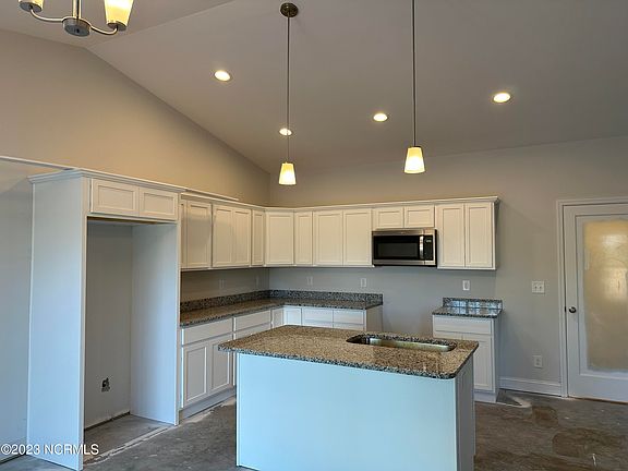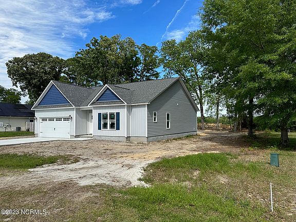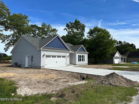 Welcome to your dream home in Richlands, NC! This stunning 3 bedroom, 2.5 bath craftsman style home is newly constructed and offers an open floor plan, perfect for entertaining and family living. As you enter the home, you'll notice the beautiful white craftsman style cabinets and granite kitchen countertops, providing ample space for all your culinary needs. The bathroom sink tops also feature matching granite, creating a cohesive and luxurious look throughout the home. Step through the sliding glass doors in the kitchen to access the spacious back patio, where you can relax and enjoy the large back yard filled with mature trees. The living room boasts a vaulted ceiling, ceiling fan, and electric fireplace, which is adorned in white shiplap, creating a cozy and inviting atmosphere. The main bedroom features a large walk-in closet, ceiling fan, and a main bathroom, providing the ultimate in privacy and relaxation. The guest rooms adjoin a shared bathroom, perfect for accommodating family and friends. The separate laundry room and mudroom area provide convenient access from the 2-car garage, making everyday living a breeze. The house features beautiful LVP flooring throughout, with carpeting in the bedrooms, ensuring a comfortable and stylish living experience. Located close to shopping and restaurants, as well as Camp LeJeune and New River Air Station, this home offers the perfect blend of convenience and luxury.