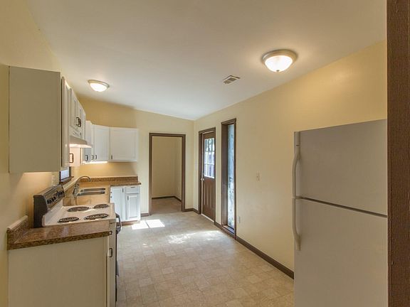 All electric. Central heat. Fridge & Stove included. Security deposit fully refundable; you keep clean house, you get it back. Application w/ background and rental history verification required. App fee is $5. 1 year, then month to month. Tenant responsible for lawn.