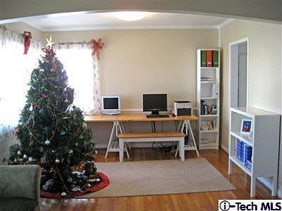 Located in excellent north Burbank neighborhood is this bright and spacious 4 bedrooms, 3-bath home. The first level features an elegant formal living room and dining room with cozy fireplace, a large kitchen and sunlit breakfast nook that opens to cozy den, also with fireplace, three bedrooms and 2 full bathrooms, the second level features a master bedroom suite and bath with sliding French doors affording beautiful mountain views and easy access to a relaxing deck. Located behind the garage there is a full guesthouse with a large living room, a bedroom, a 3/4 bath, a kitchenette area and walk-in closet. The backyard features a large and refreshing swimming pool with large covered patio area, perfect for entertaining family and friends. All measurements are estimated, guesthouse is not included in square feet; walk-in closed was added without permits, buyer to verify all the information including square footage and permits.