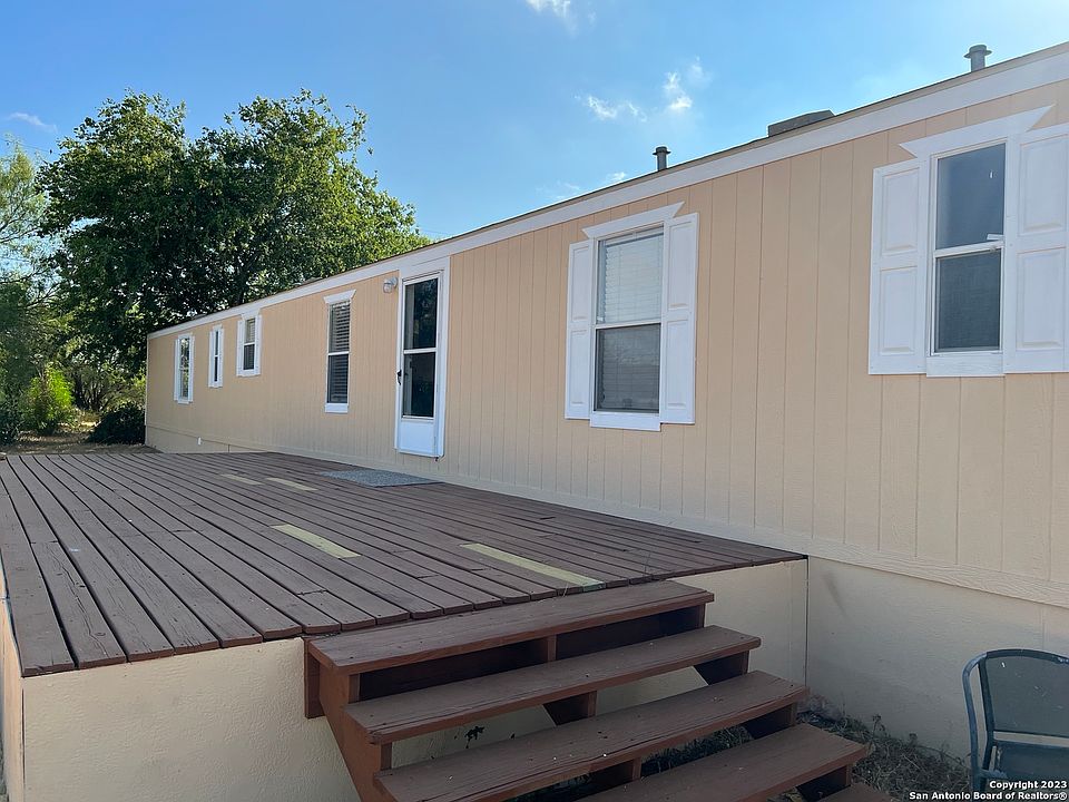 Welcome to this charming 3 bedroom, 2 bath mobile home with a split bedroom design. The spacious and newly refurbished interior features a large kitchen island, perfect for gathering and entertaining. Enjoy the cozy atmosphere and ample natural light throughout the home. Step outside onto the large deck on the front, ideal for enjoying your morning coffee or relaxing evenings. The fenced yard ensures privacy and security, complete with a convenient gate for easy access. Come see it today.