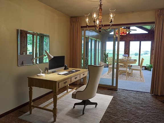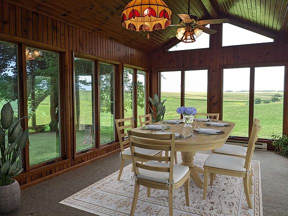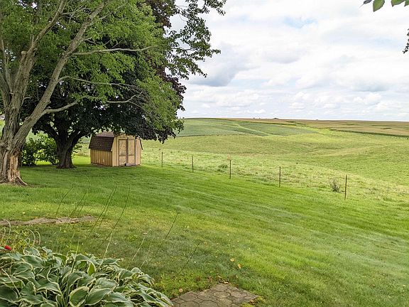 You'll feel like you're sitting on 100 acres of rolling hills! Great curb appeal brings you to the covered front porch. Once inside you'll appreciate the room sizes, living room with bay window and wood fireplace. Kitchen with tons of cabinets, pantry and storage. Open 4 season room to enjoy the stunning views and the edge of town feel. Attached two car garage plus workbench and storage. Main floor also offers 3 bedrooms all with double closets, hall full bath and master full bath. Master bath has been updated with heated tile floors. LL is partially finished and has so much potential, 2nd fireplace in the family room with pool table, 3rd full bath, lots of storage and laundry area with wash sink, all very open and ready for your ideas. Hi efficient furnace and central air with aprilaire. Patio area off the 4 season room and garage. Pear and apple trees.