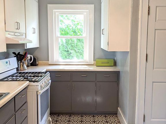 This 3 bedroom 1 bath home is move in ready! New: energy efficient/easy clean windows, seamless gutters, privacy fence, kitchen appliances, full rewiring, AC unit, hot water heater all in the last 5 years! Main level boasts tall ceilings throughout the living room with decorative fireplace, kitchen with freshly painted cabinets and new floors, dining room with ceiling fan and bonus den. Upstairs are three bedrooms and a bath with double vanity and good storage. Enjoy the large backyard view from the kitchen window. The new privacy fence adds extra privacy to the already private backyard. Over-sized garage, plus paved turn around give extra parking and entertaining space.Â