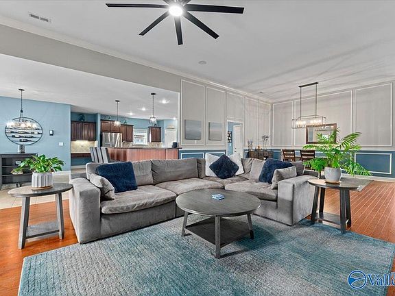 406 E. River Landing-Beautiful, quiet & private escape from the city, just minutes from Town Madison, Airport & Redstone gate 7. This home will WOW you w/soaring ceilings & elegant design touches. Gourmet kitchen loaded w/cabinets featuring gas cooktop, double oven, island, pantry & serving bar overlooking breakfast area. Isolated Owners suite has trey ceiling & sitting area. Oversized RecRm w/Bath. Separate Office & Sunroom. You will LOVE the covered patio overlooking the private backyard oasis that's fully fenced. 2023 Updates include: whole house paint, LVT in office, carpet, light fixtures & fans, patio, pergola & fire pit & landscaping. Resort style HOA Amenities.