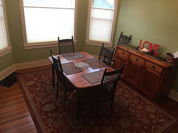 Exceptionally well-maintained and upgraded Fall Creek home with 4 bedrooms, 1.5 baths, and Andy Foster-designed kitchen with stainless stove and refrigerator, maple cabinets and marmoleum floor. Recent renovations include bathroom (2012), hardwood floors (2012), and Pella windows (2014). Lovely front porch, two back porches; one up, one down. Attic storage and dry basement. Central AC. Beautiful gardens in rear including pergola that becomes covered with yellow trumpet vines. Facade is Palladian-style rusticated masonry.
