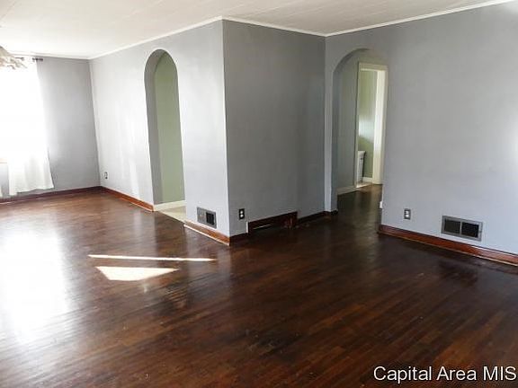Peaceful location 2BR/1BA, hardwood floors in living room, dining area, and both bedrooms. Fireplace in living room, all appliances stay, nice kitchen, updated bathrooms with laminate flooring. Easy commute to Springfield, Decatur, or Lincoln; updated electrical, water heater, and furnace. Attached carport for protection from the weather for car or pickup truck, large lot.
