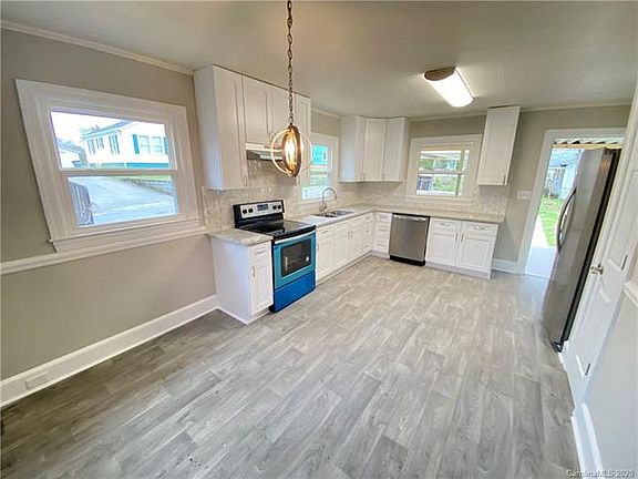 Newly renovated 3 bedroom 1 bath home nestled in the heart of Kannapolis. This home features all new floor coverings with refinished hardwoods throughout most of the home, soft close cabinets, light colored granite counter tops, new stainless appliances, custom tile shower, vinyl windows and fresh paint throughout. So much more to this property than just the house as it features a partially covered rear deck great for outdoor entertaining. House offers a corner lot that is fenced in with half a basement with access from inside home and a garage door on the rear with a detached 2 car carport that is a side entrance. A must see!!!