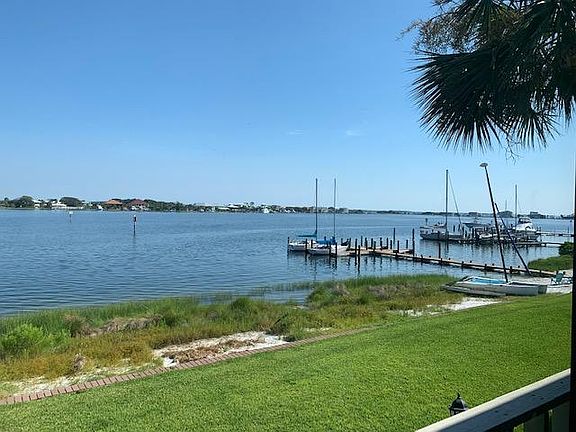 Paradise living! Located on Little Sabine Bay with Gulf beach access just across the street. Boat slip available outside your door! Upstairs is a large master suite with spacious double vanity bathroom with separate dual head shower and Jacuzzi tub. The second bedroom has a bathroom just across the hall with an additional vanity and dressing area. The family room has amazing views of the bay. The kitchen is furnished with stainless appliances and a breakfast bar and has room for a dining table. Washer and dryer is located just off of the kitchen. Downstairs is a large third bedroom and a huge storage area that opens onto the bay. Owner pays monthly HOA; tenant pays utilities