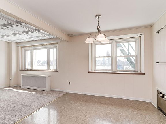 SUN-DRENCHED and SPACIOUS Great East Facing 1 Bedroom and 1 Bathroom with SPECTACULAR NEW YORK VIEWS The Large Bedroom has 2 huge Closets and wood Floors. The Bathroom is modern with a full sized Bathtub! The Living Room is sizeable with an Eat-In Kitchen area. KEY LOCATION! Situated in Sought after Weehawken Reservoir Area on a quiet Residential Street! Just Minutes To NYC Via Car, Bus OR Ferry. Ferry shuttle Service Picks up at Corner. Close To Hoboken. Easy access to Light Rail and Highways Short Distance to Waterfront Restaurants and Shopping. Heat and Hot water included!! WON'T LAST!