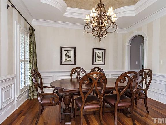 OPEN SUNDAY 2pm- 4pm Oct 1st! EXCEPTIONAL 5 BEDRM APEX HOME W/ GENEROUS 3 CAR GARAGE! Front porch w/stone ext! 9ft double wood & glass entry doors! Fresh paint inside & ext trim! Cherry hardwds greet you! Formal din rm w/plantation shutters! Fam rm w/ built-ins & gas log fp! Gourmet Chef's Kit w/oversized island, Dacor SS appls, custom cab & large breakfast nook! Office w/coffered ceiling! 1st fl guest bedrm! master suite w/tray ceiling, 3 addl bedrms & bonus! Walkup attic. Screened porch! Pool comm!