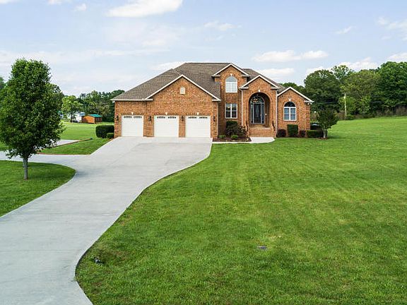 Finally..a home that has all you are looking for at an affordable price! 2 master suites on the main floor. All 5 bedrooms each have their own full private bathroom. This all brick beauty with a 4 car garage was built in 2008 and offers 10 level acres with plenty of room for a pool. Open eat in kitchen provides a large center island 42 inch birch cabinets with soft close drawers, chef's desk, butlers pantry, granite counter tops & all appliances included. Spacious Laundry room with built in cabinets, utility sink & washer /dryer included. 3 zone a/c and heat pumps for each floor allows true energy efficiency. See thru fireplace between the hearth room and kitchen. Built by custom local builder, A&M Builders, features incl coffered ceilings,bull nose corners, transom and clerestory windows.5 ft custom wrought iron fence around part of the backyard is perfect for Fido and the kids. The basement offers custom etched cut concrete floor & plenty of storage space plus another garage to store the toys.A full bedroom and bathroom in the basement for family member that needs their own space. All Bathrooms feature double high vanities. Trey ceilings with lights in both master bedrooms and sliding doors that lead to the spacious deck. 16' coffered ceilings in the family room with sliding glass doors to deck. Office on main floor + formal dining room or living room. Or they could be his and her offices. No carpet anywhere! 18 inch tile in all wet areas. Commercial grade laminate flooring on main and upstairs allows for dogs and kids to play with easy maintenance. 1 year home warranty to buyer at closing with acceptable offer. Easy access to town, airport, and the Great Smoky Mountains.This property is being conveyed on 2 separate lots. Buyers can sell the 8 acre lot or build another home on it. The main house is located on 2.19 acres. Horses allowed! Floor plans convey at closing. What are you waiting for? Come view this home before it is gone!