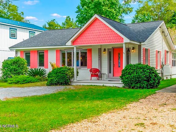 Affordable, quaint, cute and located in the Heart of the Old Village in Oriental., this 3 bedroom, 2 bath home is not in a flood zone and is only 1 1/2 blocks from the Neuse River & public beach! With 1,636 hsf of living space, the kitchen features all SS appliances, tiled backsplash, pantry and a gas range/oven for all of your cooking needs! A huge sunroom serves as the focal point in this home with private yet expansive views of the fenced backyard that has a 16' X 12' finished storage/multipurpose building and a detached shed for garden/mowing equipment. The living room features vaulted ceilings with exposed beams and a large Bay window as well! The master bedroom has an ensuite bathroom with a walk-in shower and two walk-in closets! This home is partially-furnished (negotiable) and includes all of the kitchen appliances plus the washer & dryer! No HOA or HOA dues! The current owner has a transferable flood policy! Nothing Could Be Finer!