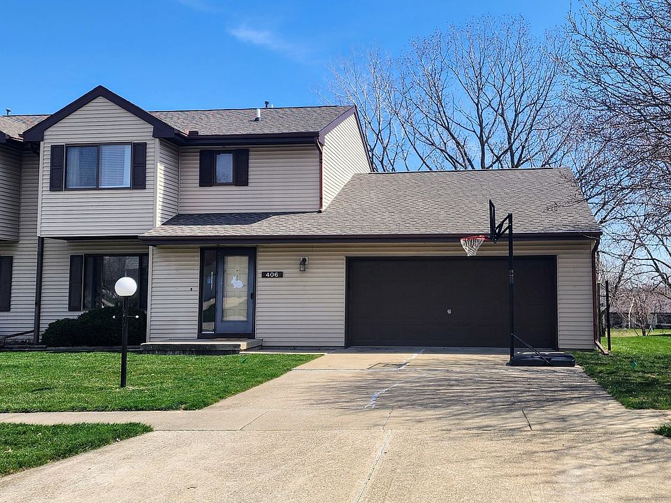 Super clean and move in ready, 2 owner condo with water views! Don't miss this meticulously cared for condo with over 1700 ft2 of living space. The main floor features a spacious living/bonus room open to the dining room. The kitchen is spacious with lots of cabinets, all appliances and open to the family room with a fire place, vaulted ceilings and views of the water. 1/2 bath and laundry closet in the hall near 2 car garage access. The 2nd floor includes the owner's suite with a private bath, overlooking the water. There are 2 bedrooms, full bath and linen closet nearby. New Roof 2022, Hot Water Heater 2021, AC 2023. Move in ready! Seller prefers mid to late January Closing. $150 monthly dues for lawncare, snow removal, exterior insurance, garbage/recycling. $100 yearly for lake association. Owner Occuppied only, no Rentals allowed.
