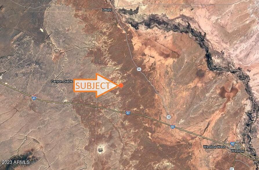 80 ACRES FOR SALE NW OF WINSLOW, AZ.LOCATED NORTH OF THE METEOR CRATER REST AREA & CANYON DIABLO. IDEAL FOR THOSE WHO LIKE EXPLORING - PERFECT FOR YOUR OFF-GRID/RECREATIONAL USE. APPX 5000 FT ELEVATION. ZONED GENERAL-10AC MIN. COCONINO COUNTY APN 406-72-001-K*BUYER TO VERIFY SCHOOLS, ZONING / USE, UTILITIES, ACCESS & ALL PERTINENT INFORMATION. MUST UTILIZE AERIAL/COUNTY MAPS & GPS COORDINATES 35.151163, -110.973872. USE CAUTION - ROUGH RD & TRAILS - 4WD REQ.