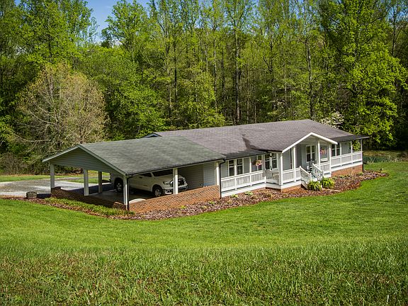 Count the stars from the Serene setting surrounded by the view of soothing trees everywhere you look! Relax on a super sized deck over looking a covered dock situated on your private pond. A priceless view with an affordable home located minutes from downtown Taylorsville. This sprawling 3 bedroom, 2 bath DW ranch style home sets privately on over 2+ acres with recent updates including New Vinyl siding and dual pane replacement windows, providing for low energy bills. The rustic laminated flooring accents the rock fireplace in the open great room. The split bedroom plan with over 1700 feet means there is room for everyone. The attached double carport and long private drive allow for plenty of parking. 97% financing available for qualifying buyers.