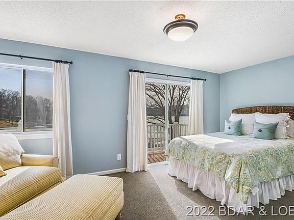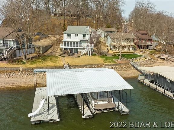 Spectacular flat lakefront property with zero steps to the water, cove location and main channel view! This fresh & well cared for 4bed/3.5bath home w/ a 2 car garage is a MUST see! Flat lakefrontage with concrete patio/firepit area & the amazing view is a dream! Nice wood floors, granite counter-tops throughout, crown molding, newer doors and railings, updated fixtures, great outdoor kitchen, newer concrete dock and 20,000lb boat lift! Master suite on main level has large granite counter top vanity, nice tile walk-in shower and walk-in closet. Living room is open to dining room/kitchen, nice lakeview & tile accent wood burning fireplace w/ built-in shelving on each side. Off the dining room is an outstanding heated/cooled sunroom w/ great natural light, access to open deck & steps from back yard. Blacktop all the way to the property. Great location by land and water, off of the Osage 31MM. (4th bedroom & 3rd full bath is downstairs and accessed by exterior door by outdoor kitchen.)