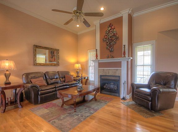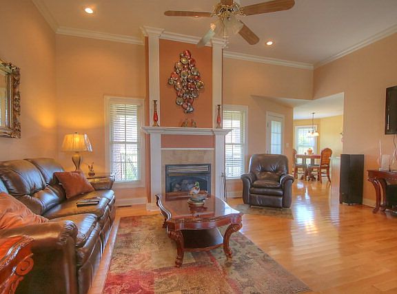 Warm and inviting 4BR/2BA all brcik dream home with wonderful open floor plan. Gorgeous hardwood floors & 10'' ceilings in great room & dining room, gas FP, kitchen w/ stainless appliances, maple cabinets, & breakfast bay leading to a covered deck & level manicured back yard! Split bedroom floor plan allows for a private master suite boasting double tray ceiling, double sink, whirlpool & sep shower. Cul-de-sac street . Take a look and fall in love!