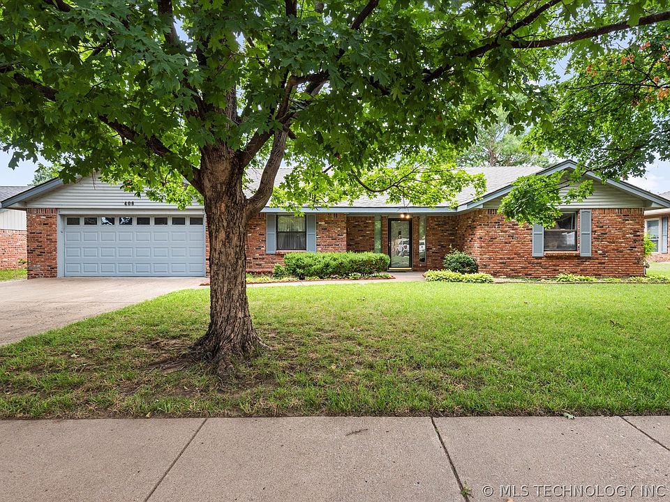 This home features 4 bedrooms, 2 full bathrooms, and a 2-car garage with a split bedroom layout. The master bedroom includes a walk-in closet. Enjoy a formal dining room, a cozy gas fireplace, and a built-in bookcase. The kitchen boasts a breakfast nook, large pantry, and stainless steel appliances. Step outside to a covered patio overlooking a fully privacy-fenced yard. The roof was replaced in 2023.
