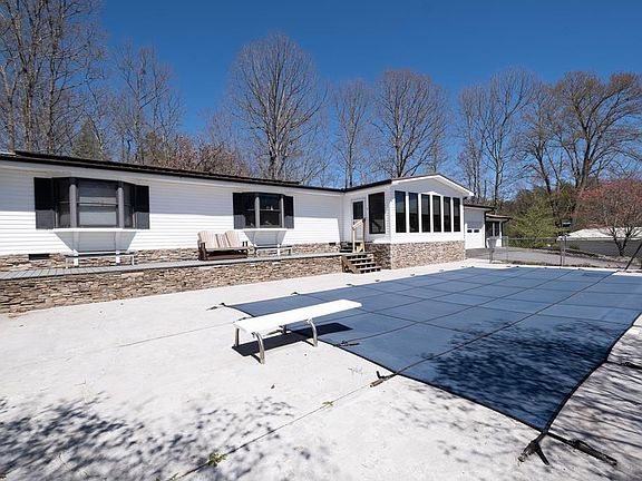 This is one LUXURIOUS manufactured home that offers plenty of space for entertaining family and/or guests. You'll love the Great Room with its built-ins and fireplace adjacent to your kitchen with SS, solid surface countertops, and large U-shaped counter, ideal for preparing meals. A spacious laundry room with French door access to your backyard oasis complete with a pool! Enjoy morning coffee or evening drinks in the beautiful sunroom overlooking the pool area, truly an incredible spot to relax after a long day! Master Ensuite has a garden tub/shower & lots of built-in storage. 2 guest bedrooms plus an extra Bonus Room, great to use as an office or crafts. With an attached triple car garage & detached carports there's plenty of space for all your toys. Solar panels lower electric costs!