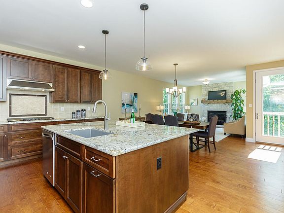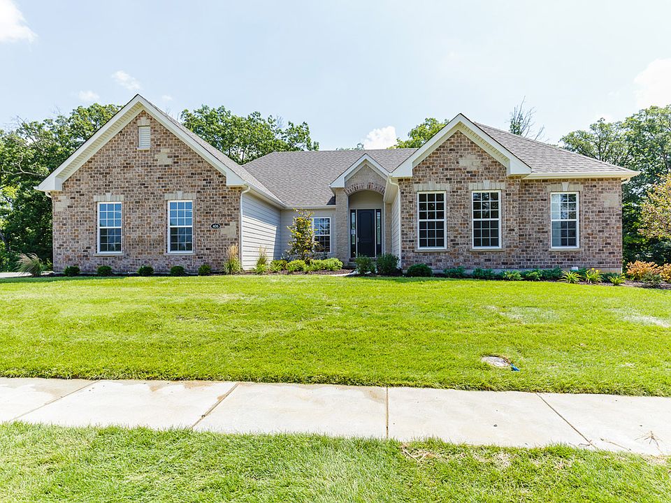 Stunning, executive ranch home by Fischer and Frichtel in the desirable Wyndgate neighborhood! Welcome home to a gorgeous .5 acre, tree-lined, cul de sac lot and exquisite high-end finishes. This 3 bedroom, 2.5 bath, 2,827 square foot ranch has a brick and stone elevation, decorative glass front door, James Hardie fiber cement siding, architectural shingles, 3 car side entry garage with auto court, full sod, professional landscape and an irrigation system. This dynamic open floor plan has hardwood floors, 9 and 12 foot ceilings, gas fireplace with stone to ceiling, Hearth Room, custom millwork, 5.25 base, Deluxe Kitchen with a large center island, spacious Breakfast Room, custom cabinets, granite countertops, tile backsplash, roll out trays, stainless steel appliance package with double oven, gas cook top, range hood, walk in pantry, custom paint throughout, wrought iron spindles at the stairs, jack and jill bath for secondary bedrooms, walk in closets in all bedrooms, raised height bath vanities, ceramic tile floors in all baths and R 50 attic insulation. The walkout foundation has a tall pour and a rough in bath. Wyndgate Oaks is an amenity-packed neighborhood with over 50 acres of wooded common ground, a pool, bathhouse, parks, a sports court, a 3 acre lake and trails for walking and biking. This fantastic location is close to the many shops, restaurants and recreation near Hwy N, 40 and 364 and is a short commute to Chesterfield Valley.