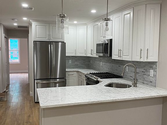 Completely renovated condo unit in nice section of Hoboken. Just one flight of stairs before you reach this two bedroom unit with two full bathrooms. Everything is brand new and nothing was spared. Open concept kitchen with quartz counter tops and stainless steel appliances. Bathroom with beautiful tile and glass shower. Recess lights throughout. Central air system, tankless gas water heater. Low monthly maintenance. Easy commute to New York city. Size are approximate only.