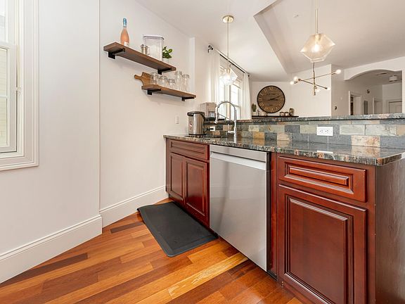 Gut renovated in 2008. This modern residence located in the heart of DOWNTOWN MELROSE! 0.2 miles to MBTA commuter rail Haverhill line. 1.4 miles to Oak Grove orange line. An elegant unit boasts the contemporary finishes with large windows and plenty of natural light. The unit has an open concept with almost 1300 sq.ft. Living/dining room, a well-appointed kitchen w/breakfast bar, stainless steel appliances such as brand new high end fridge and dishwasher & cherry cabinets; 2 oversized bedrooms and a luxurious marble bath with a Jacuzzi tub as well as a half bath for guests. You will love the high ceilings; ornamental corner fireplace; hardwood floor; in-unit laundry, central heat/AC plus a carport parking! Walk score 90+. Tenants must have good credit. First month, one month security deposit and one month broker fee upon moving in. Monthly pet rent 50$.