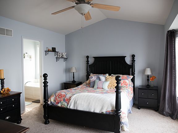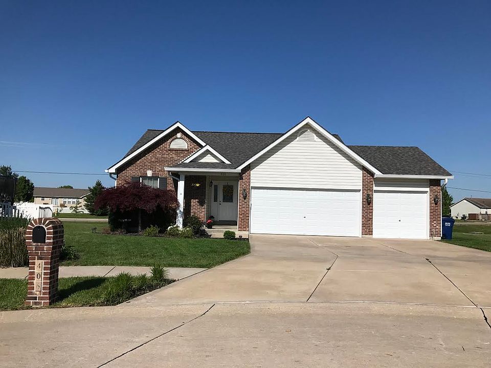 CHARMING split bedroom home features new wood laminate flooring in entry & great room & new carpeting in bedrooms! Upgraded brick front elevation and a 3 car garage. Impressive entry door & covered porch opens to foyer and vaulted great room with gas fireplace. Vaults continue to breakfast room with bay & kitchen with breakfast bar completing the open floor plan. Nice main level laundry off garage. Master bedroom has large walk in closet, vaulted ceiling & private en suite bath with dual sinks & separate tub & shower. Ceramic flooring is found in bathrooms, kitchen, laundry & breakfast rooms. Open staircase to lower level with bath rough. Home has upgraded lighting, windows, 6 panel doors & newer roof. Cul de sac lot & subdivision pool and soccer field complete this ADORABLE GREAT ROOM RANCH